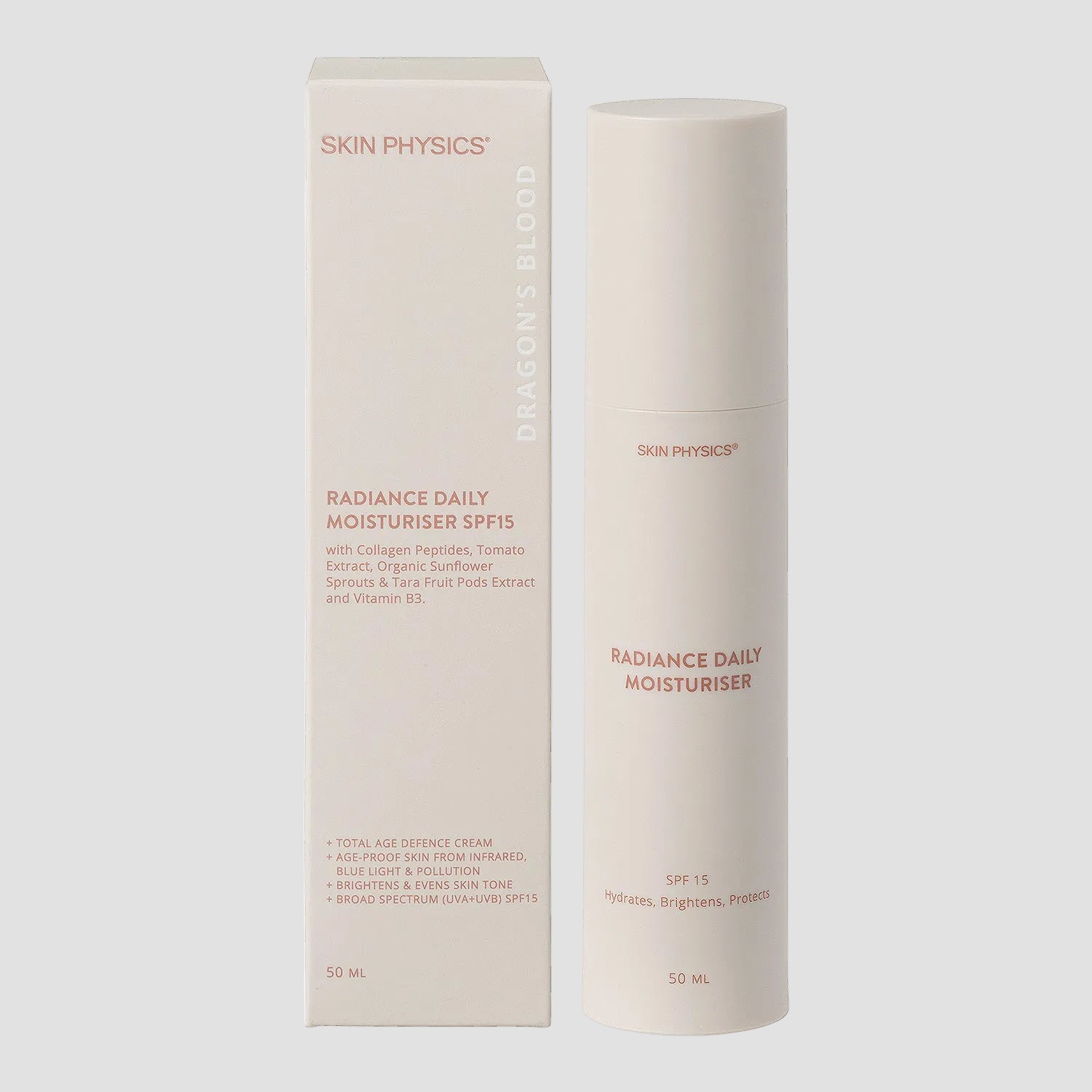 A total age defence cream that moisturises & protects the skin from five main causes of premature ageing: UVA, UVB, Infrared Radiation, Blue Light & Pollution.